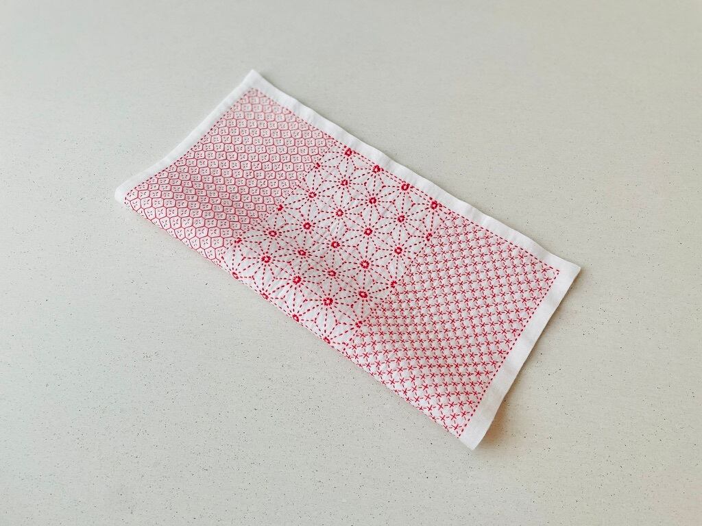 刺し子糸を丁寧に施すことで、繊細さと強さを兼ね備えた作品に仕上がっています。