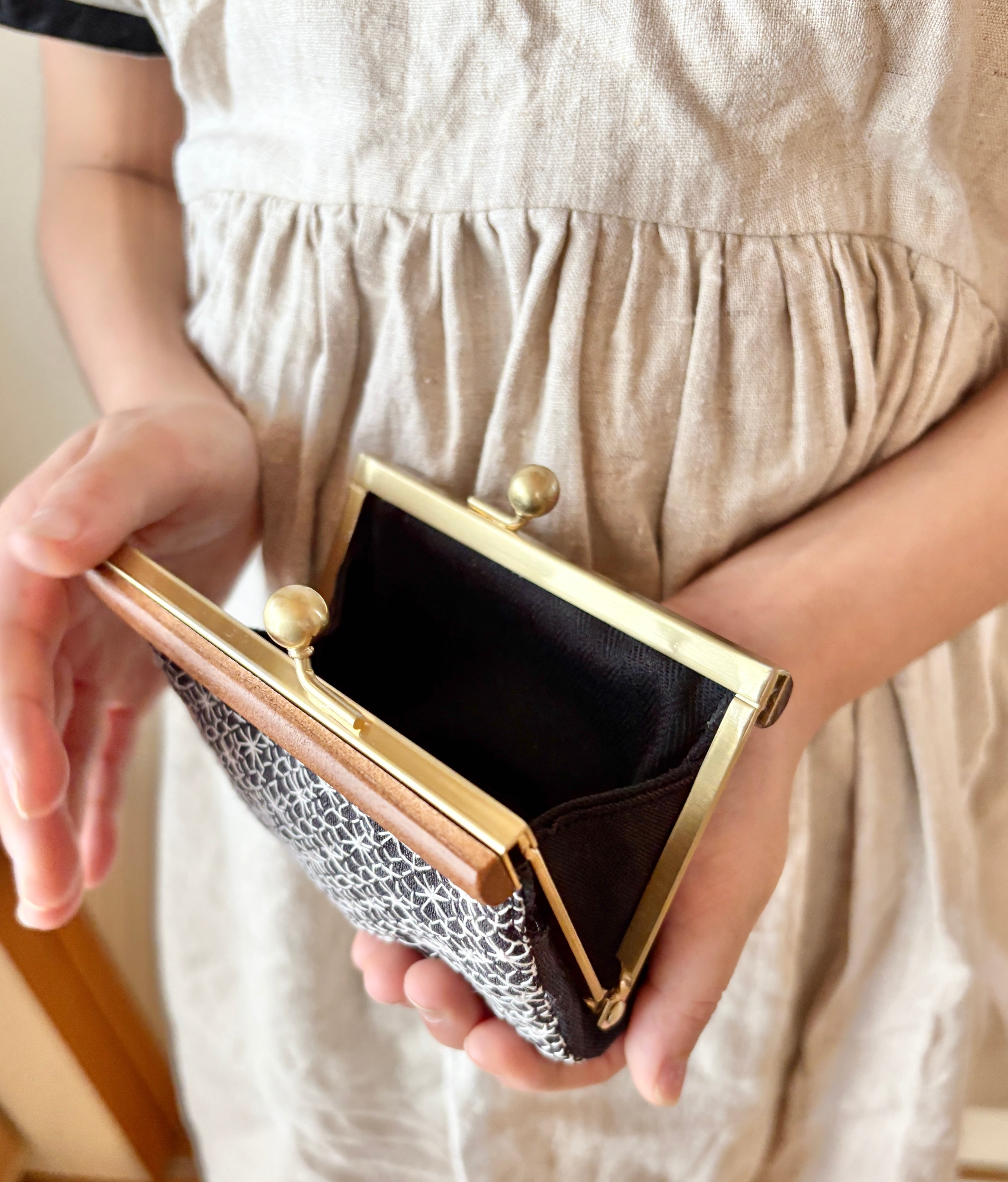 ・口金:木枠がま口(真鍮金具)