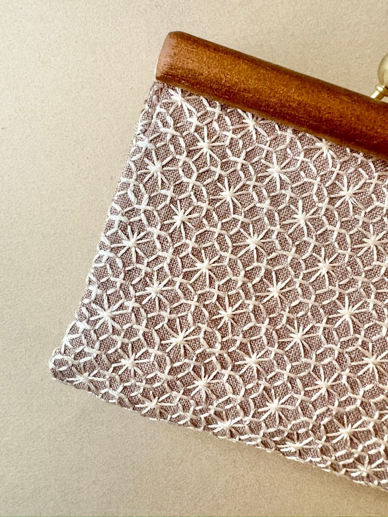 祈りをまとう刺し子ポーチ 十字花刺し(アレンジ)
